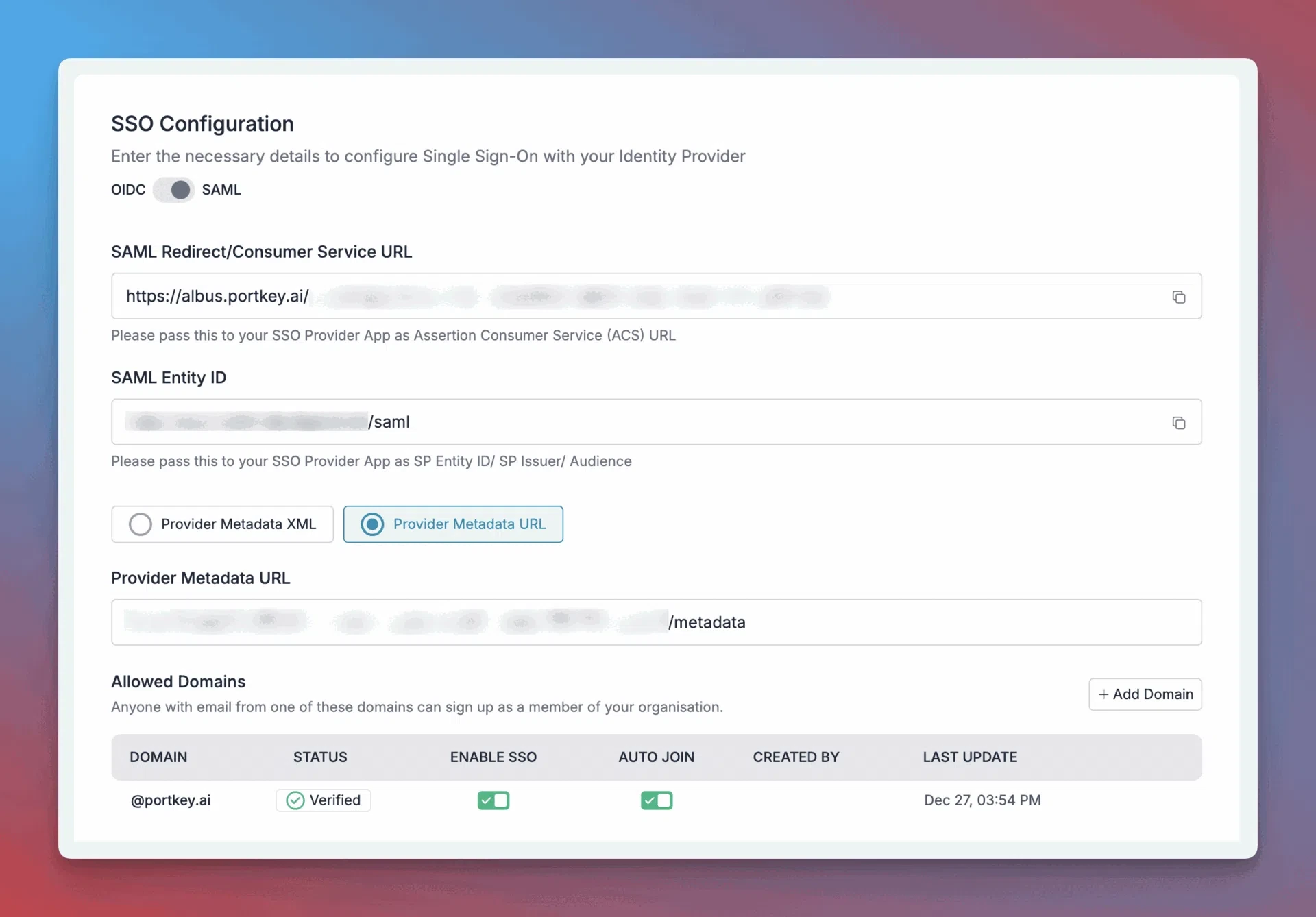 • SSO Integration: Support for all major identity providers through OIDC/SAML standards, enabling seamless enterprise authentication